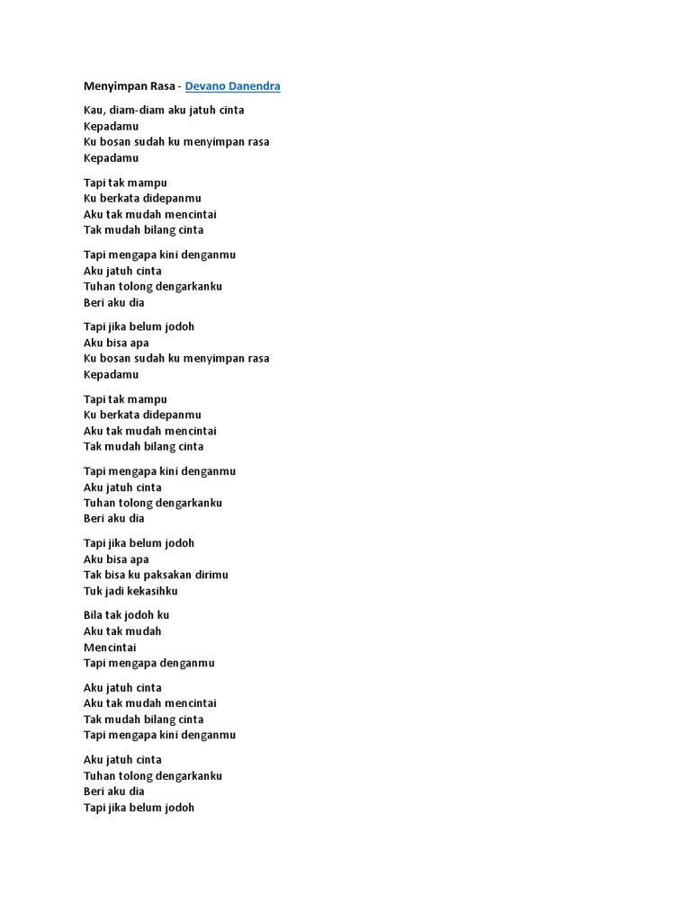 Lirik Lagu Menyimpan Rasa Devano Danendra Tabloidbintang Com